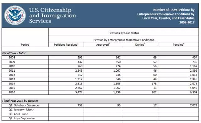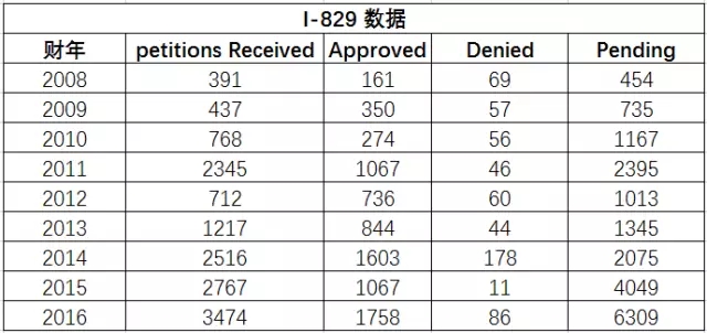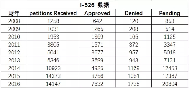 2015财年、2016财年在连续的到期-延期的刺激之下,每年都有超过14000个的I-526递交申请。